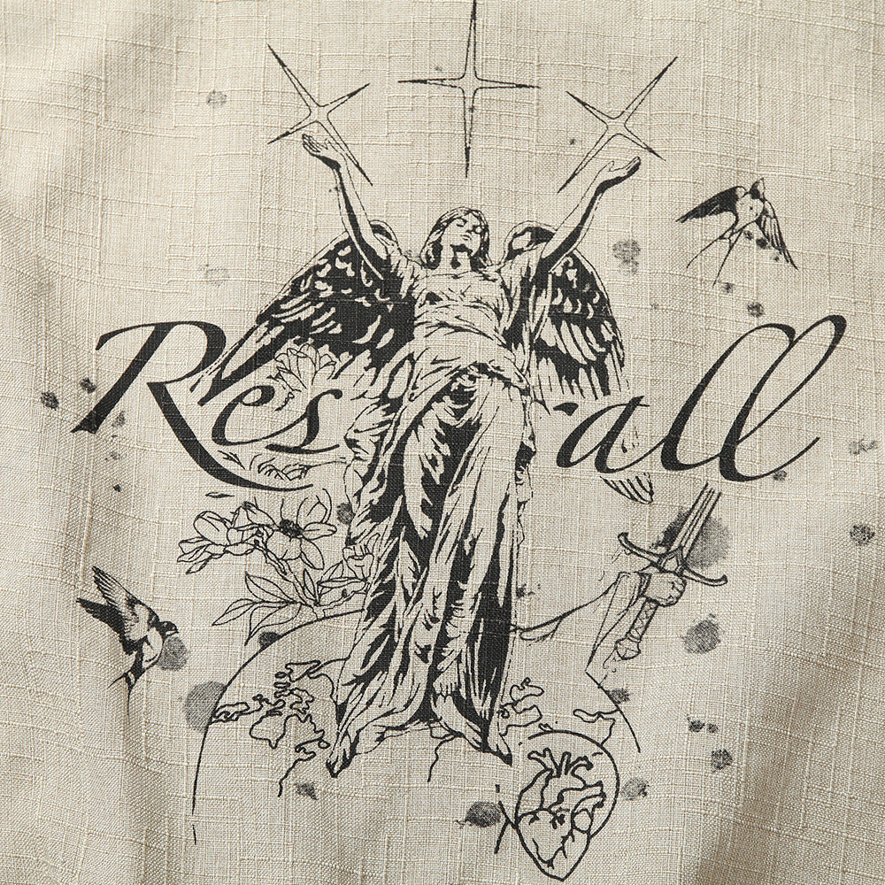 American Retro Angel Wings Statue Printed Loose Jacket Coat