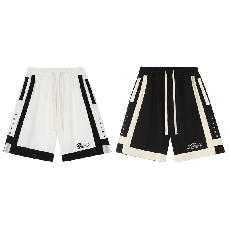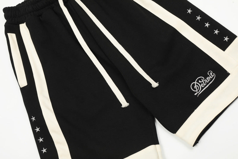 American Street Stitching Contrast Color Stripes Hip Hop Shorts Men