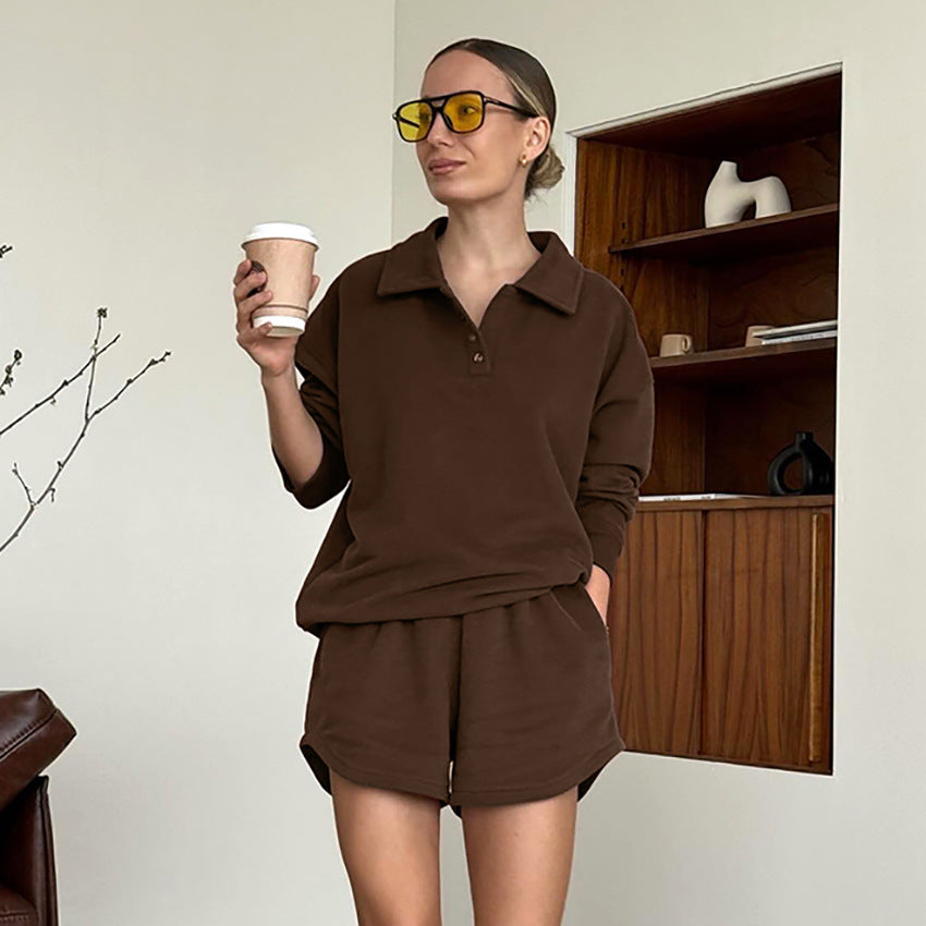 Autumn And Winter Leisure Top Shorts Polo Shirt Suit