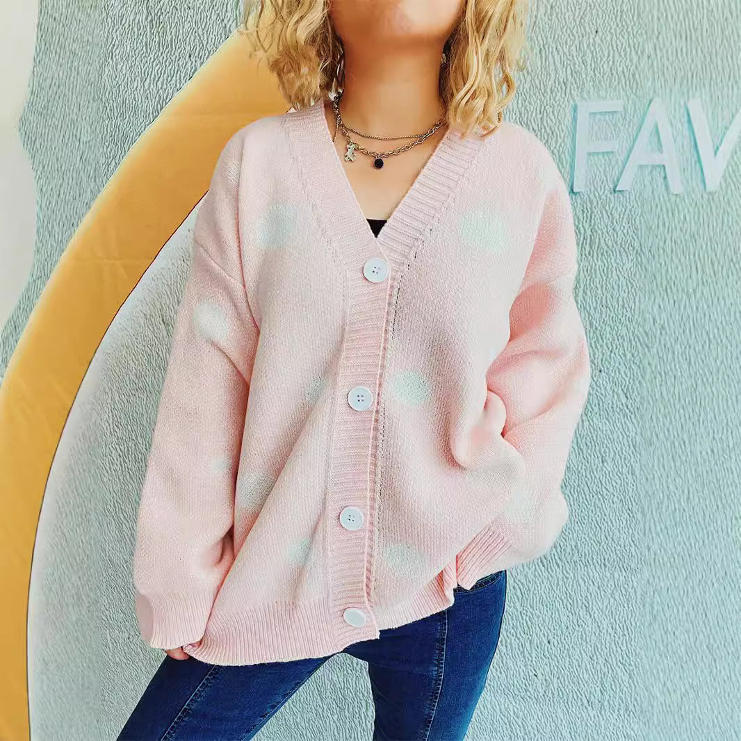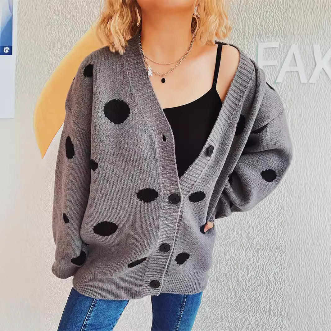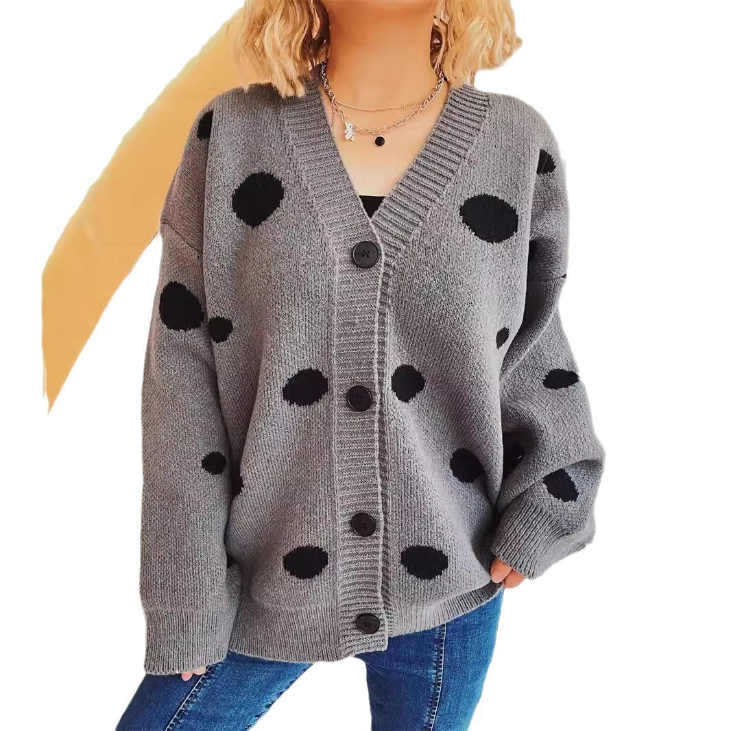Big Dot Jacquard Knitted Cardigan V-neck Coat Women