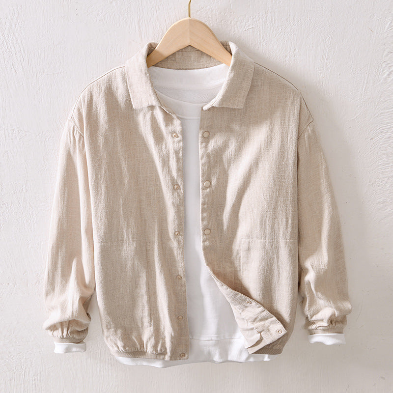 Casual Ramie Loose Men's Coat Autumn Cotton And Linen Top