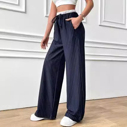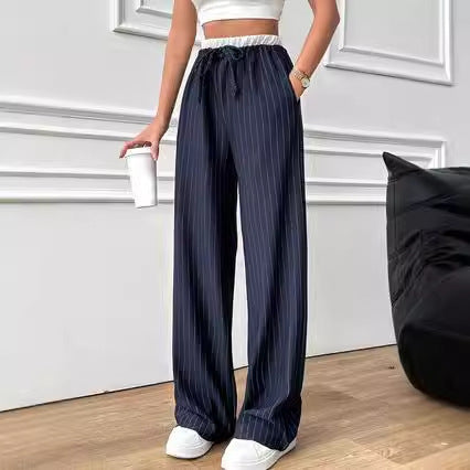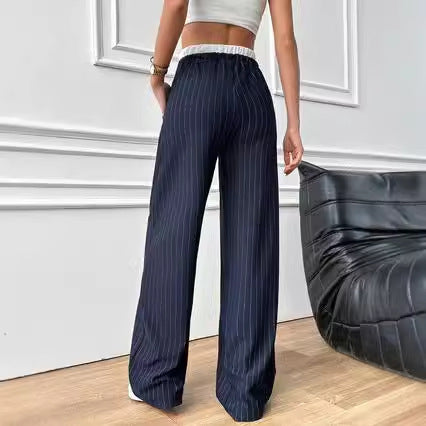 Casual Vertical Stripes Color Matching High Waist Trousers
