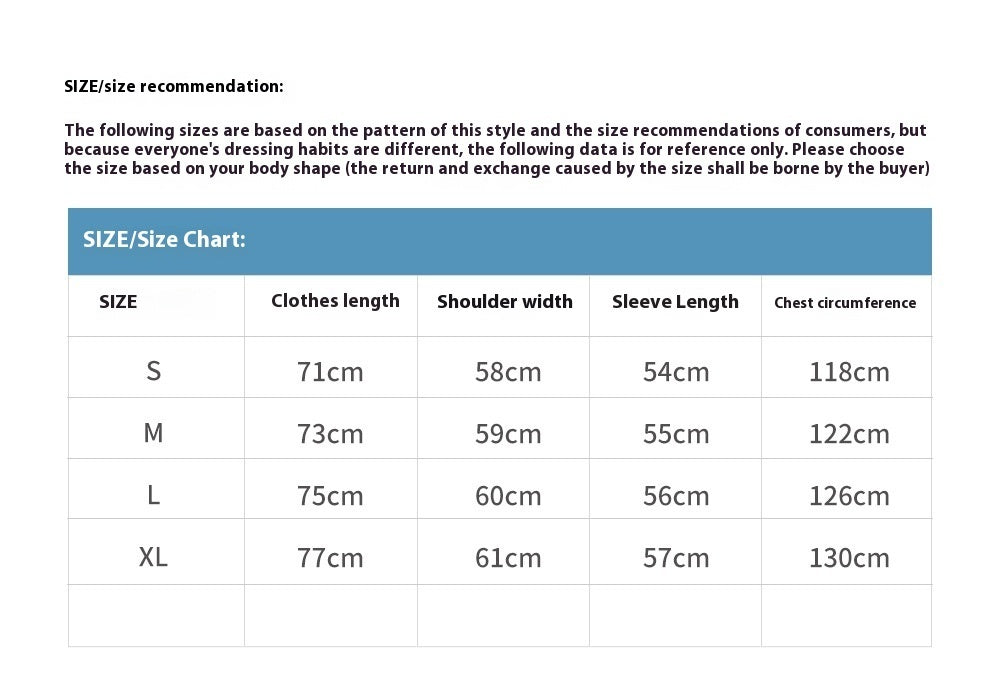 1. Asian sizes are 1 to 2 sizes smaller than European and American people. Choose the larger size if your size between two sizes. Please allow 2-3cm differences due to manual measurement. 2. Please check the size chart carefully before you buy the item, if you don't know how to choose size, please contact our customer service. 3.As you know, the different computers display colors differently, the color of the actual item may vary slightly from the following images.