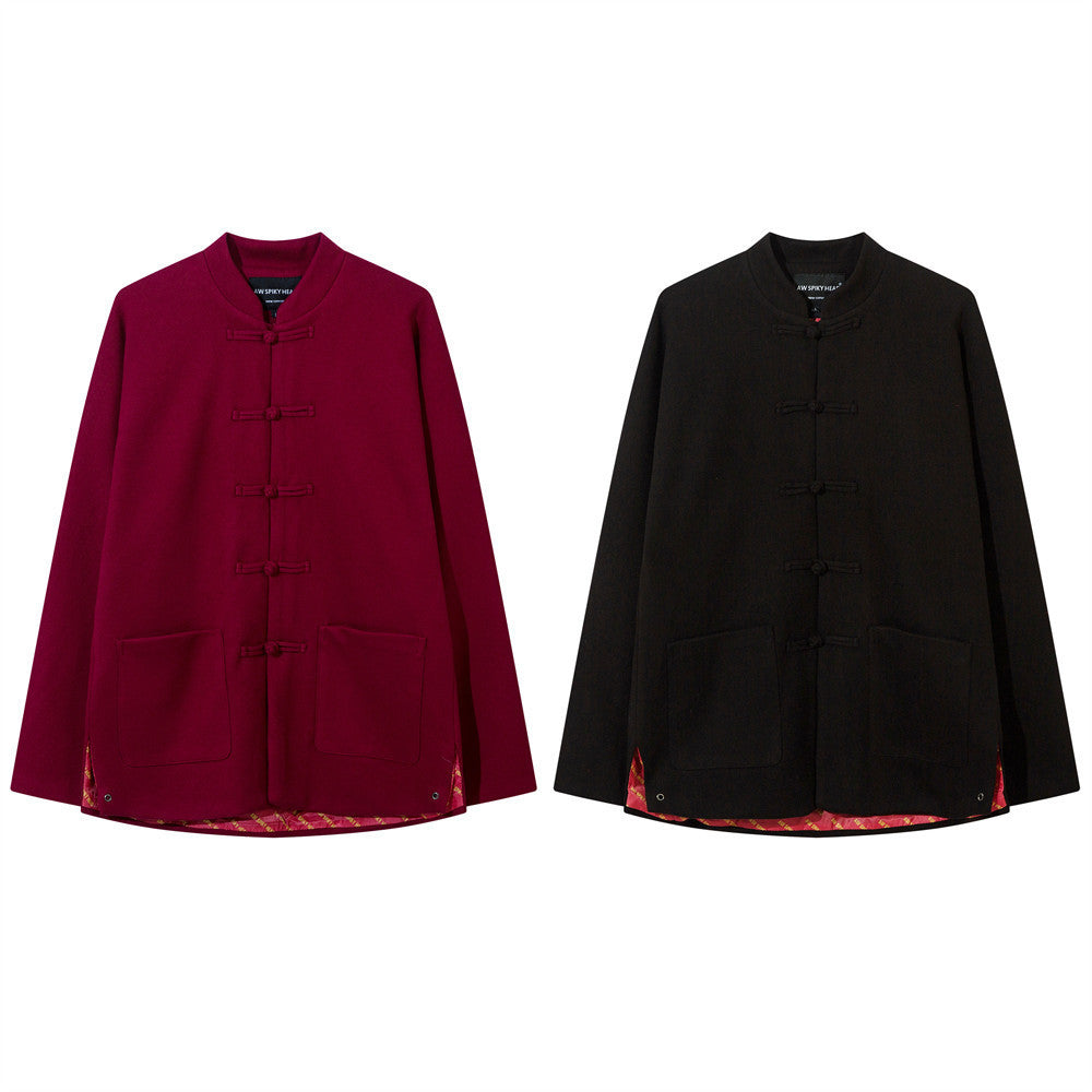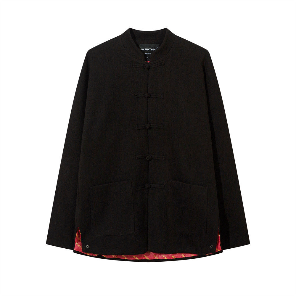 Chinese Style Buckle Stand Collar Casual Tang Suit Coat Men