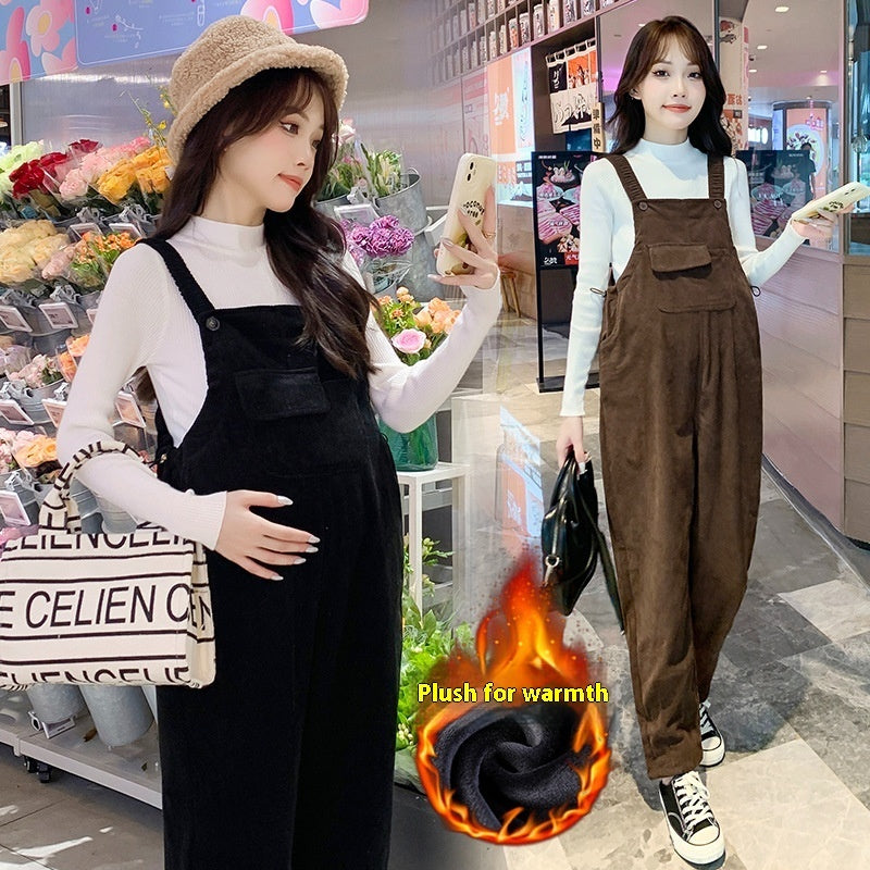 Corduroy Maternity Pants Thickened Autumn And Winter Suit Two-piece Set