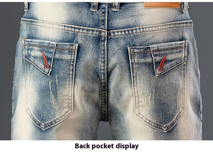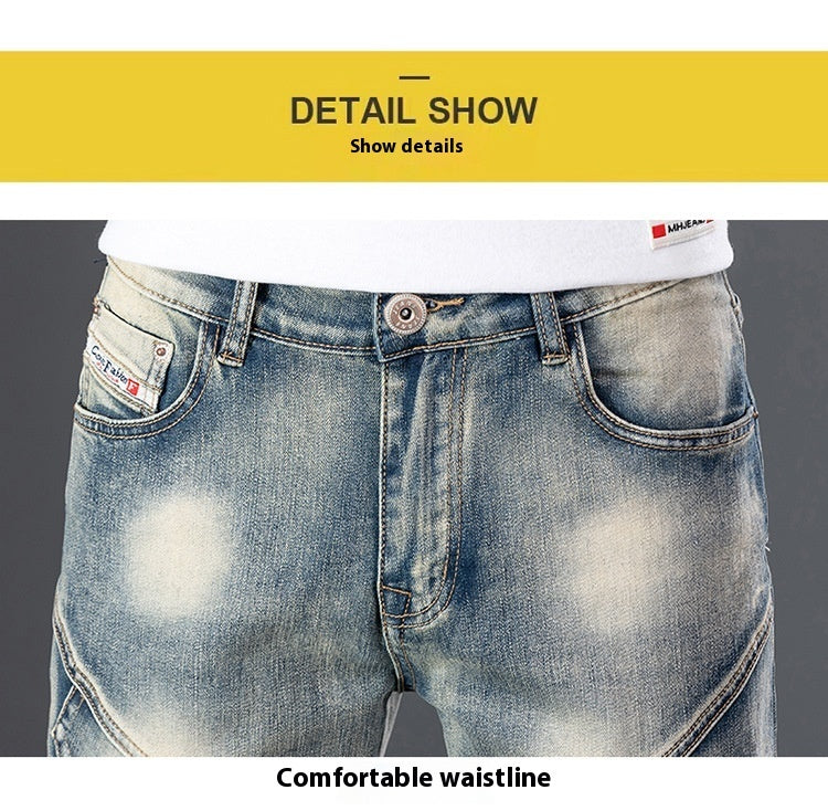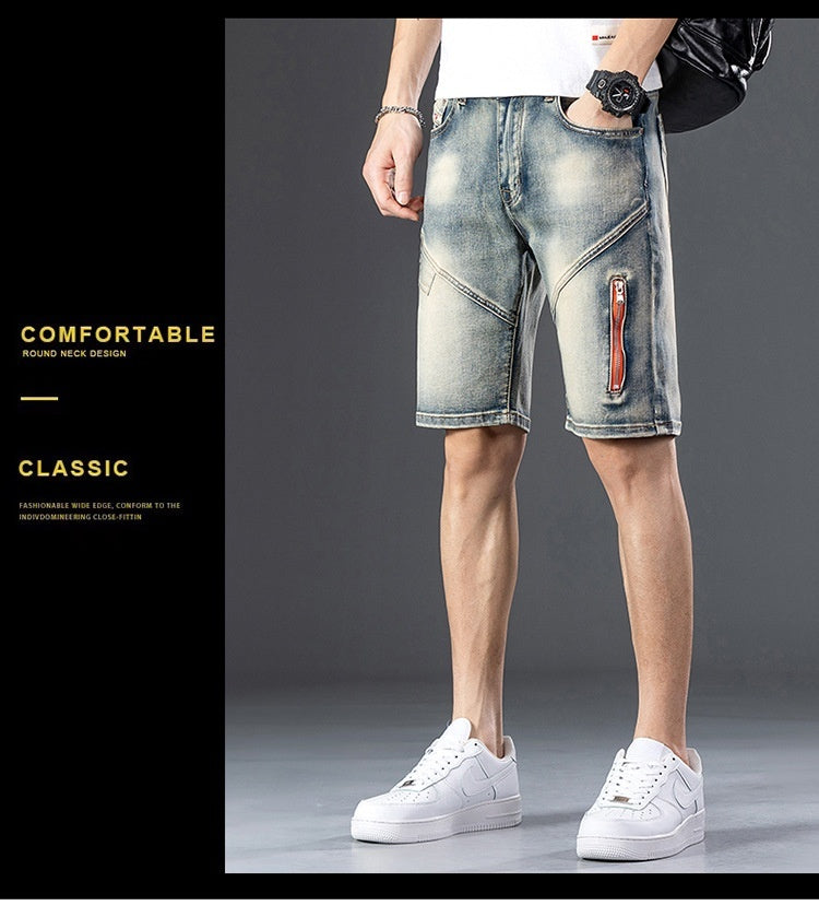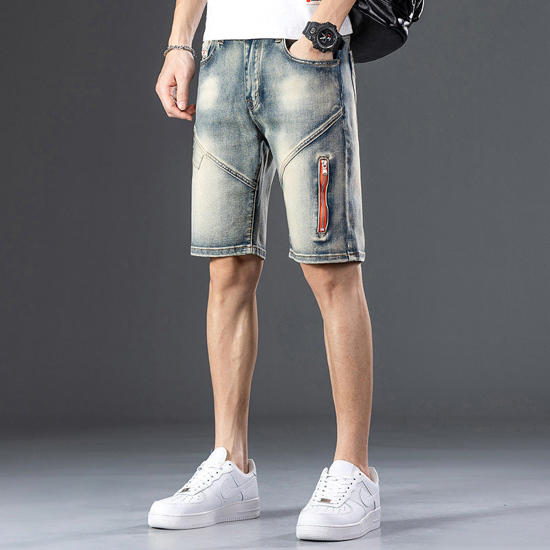 Decorative Zipper Stitching Casual Five-point Denim Shorts Men