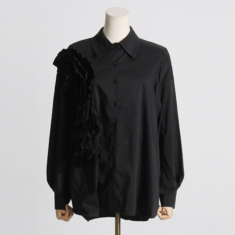Design Sense Stitching Ruffle Three-dimensional Flower Casual Shirt