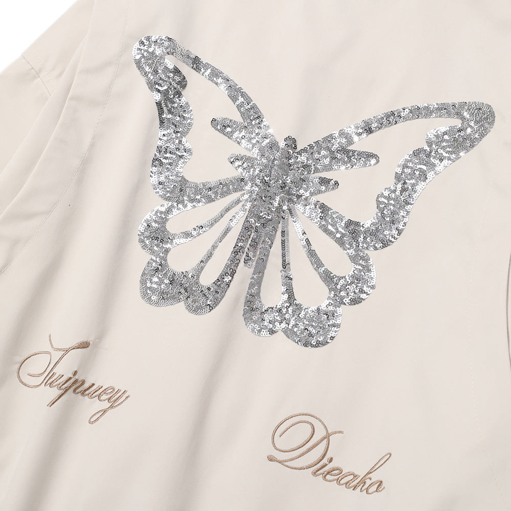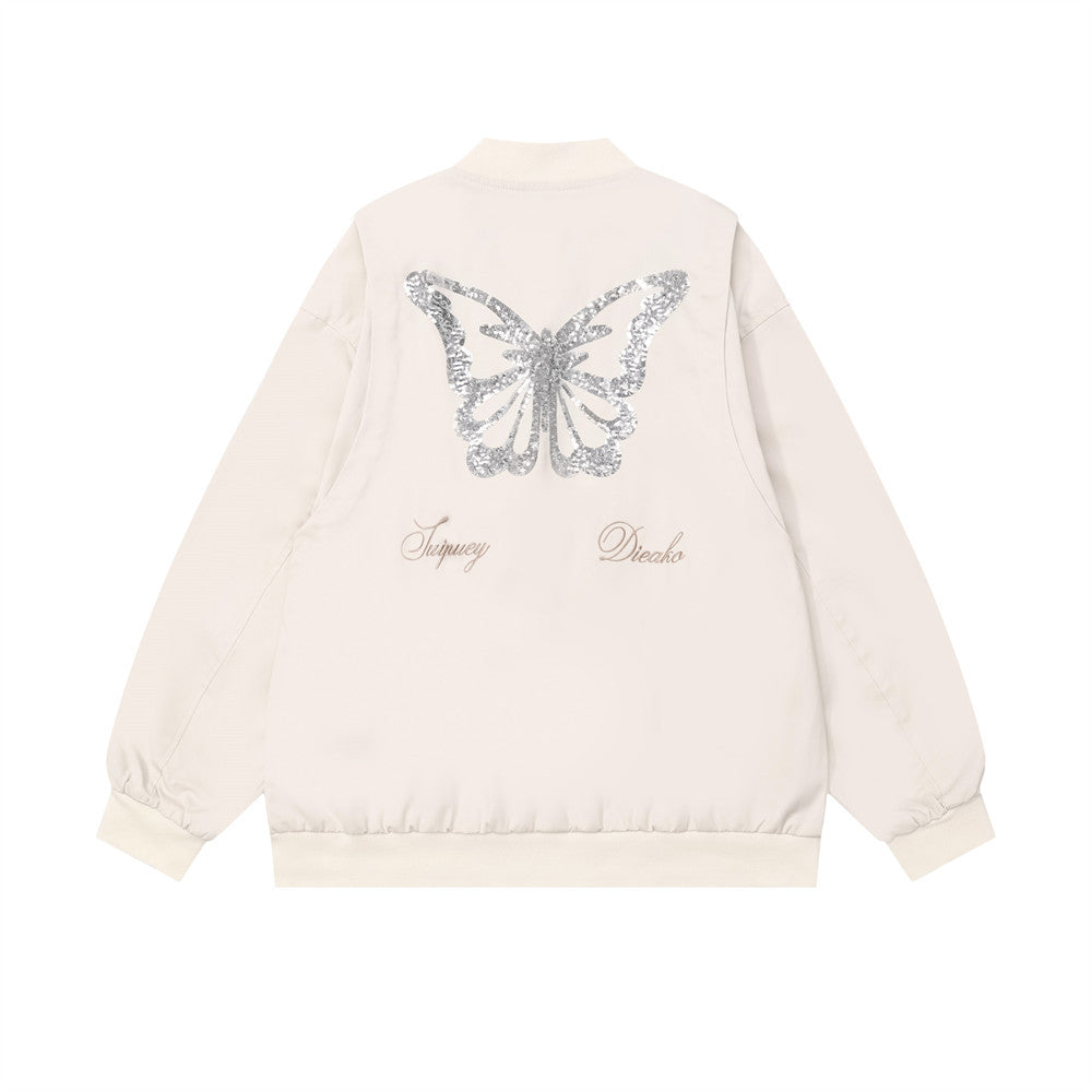 Design Sequined Embroidered Butterfly Baggy Coat Baseball Uniform