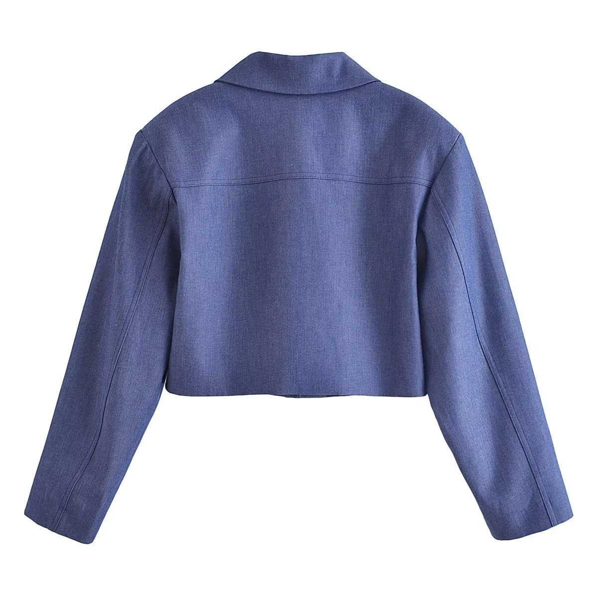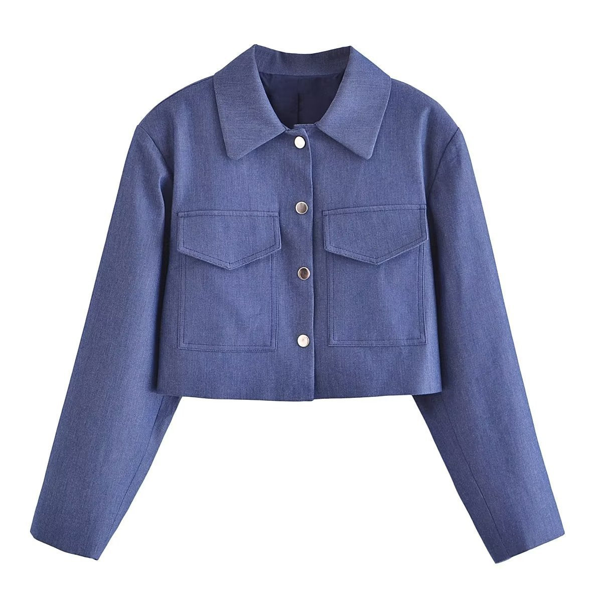 Double Pocket Cropped Coat Top High Waist Wide Leg Pants Suit