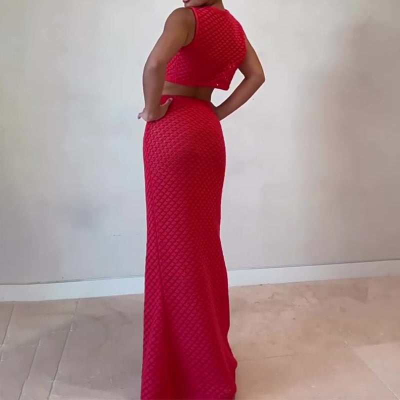 Early Short-sleeved Sweater Sheath Skirt Suit