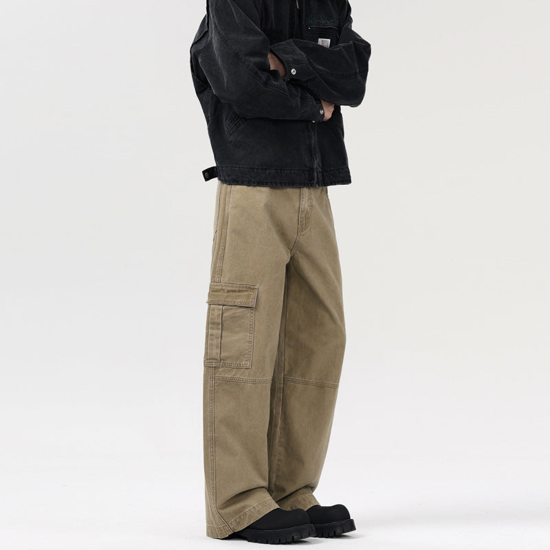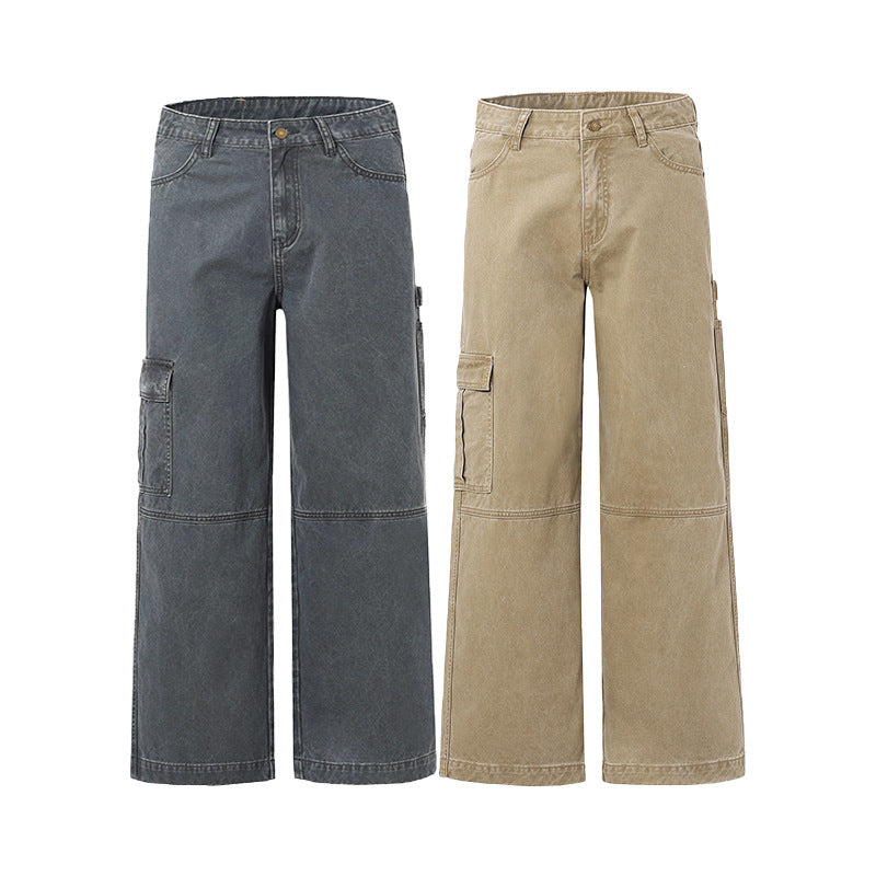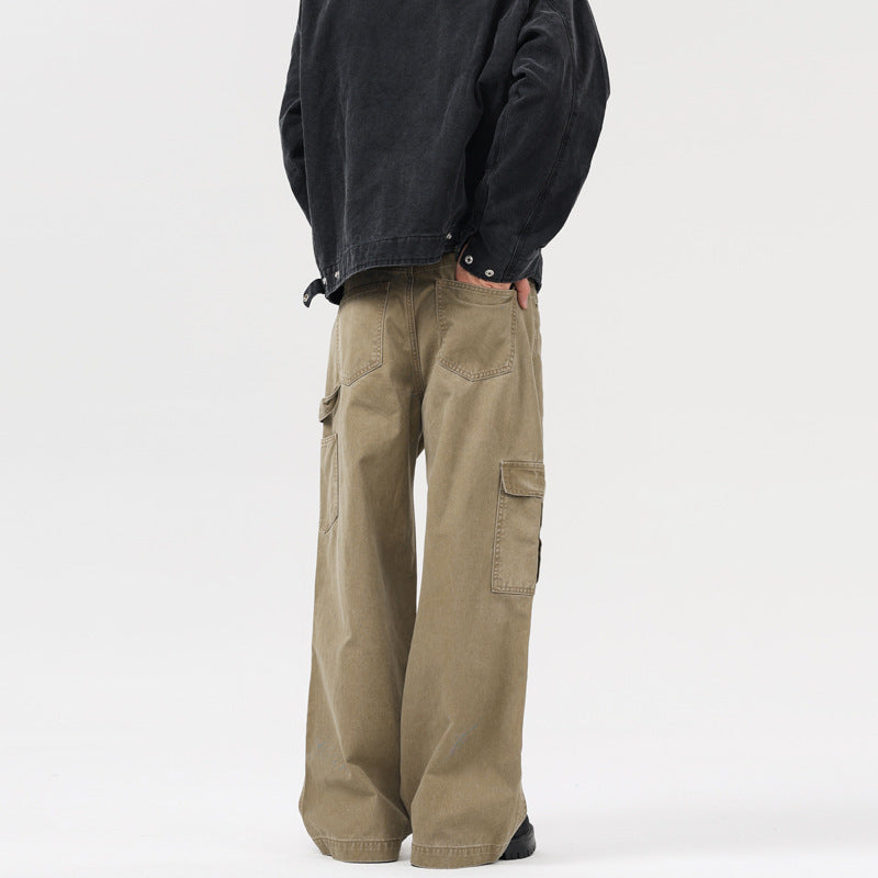 Washed Distressed Stitching Overalls Loose Straight Casual