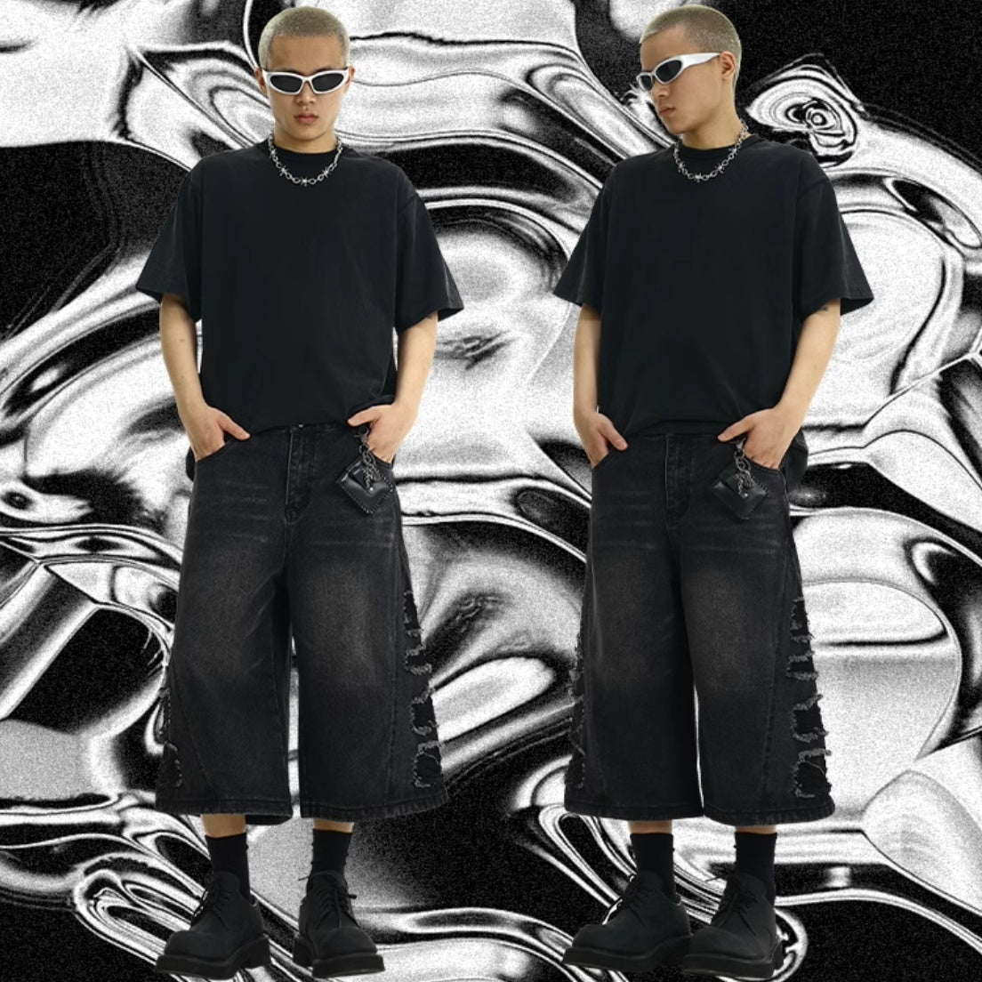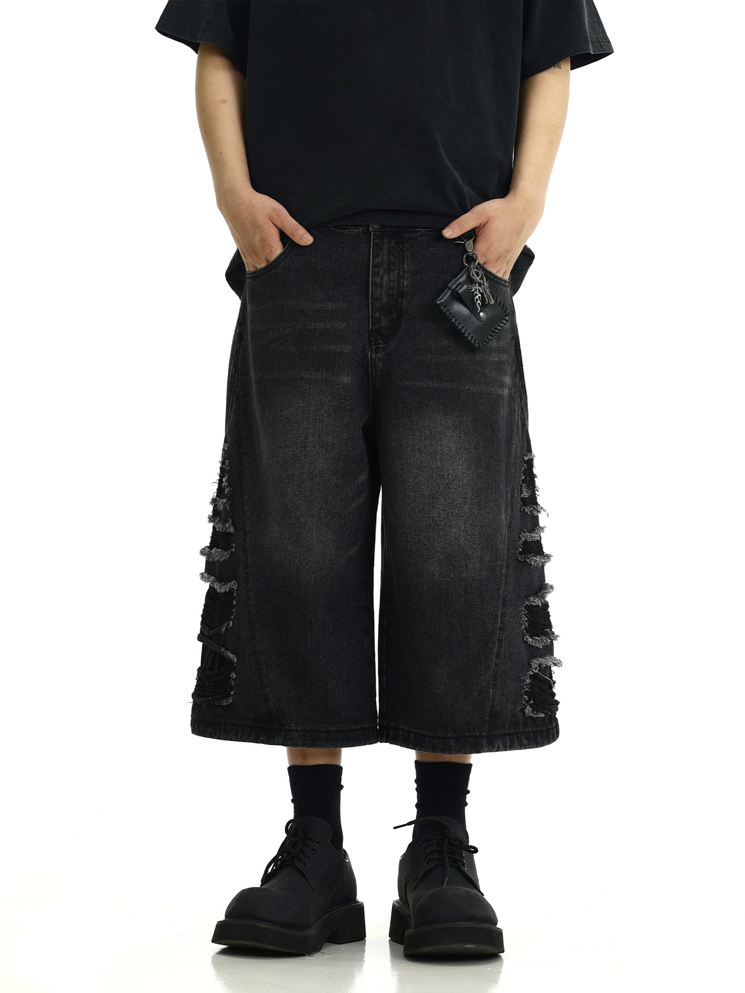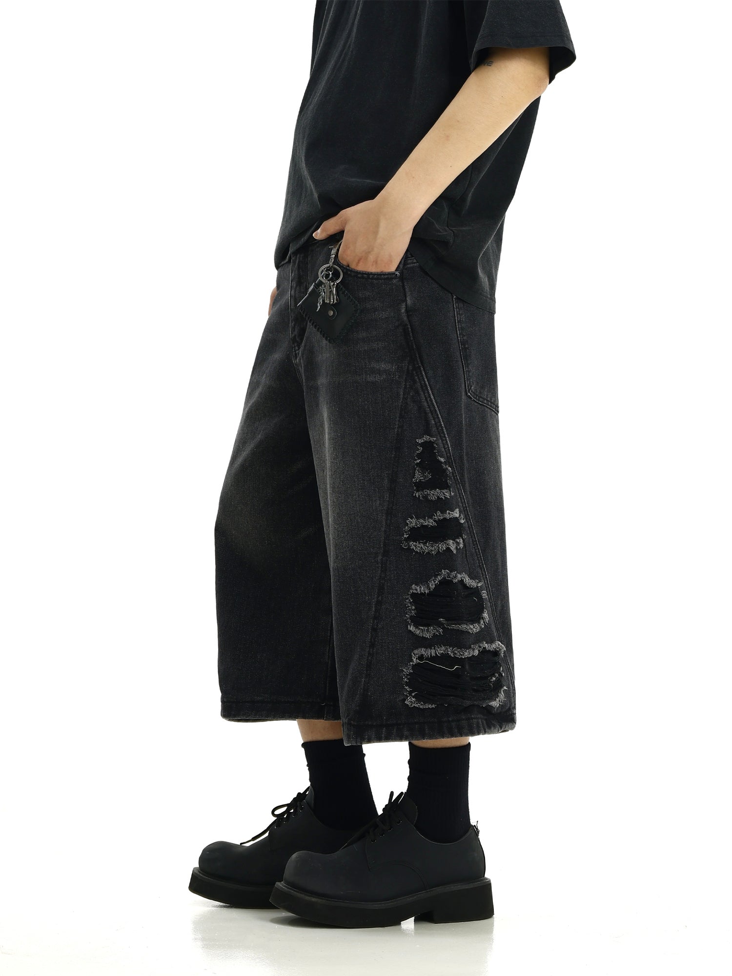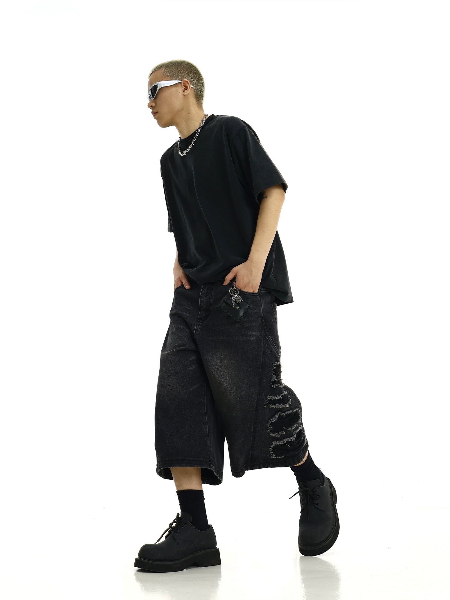 Washed Do The Old Cowboy Shorts Loose Straight Cropped Pants