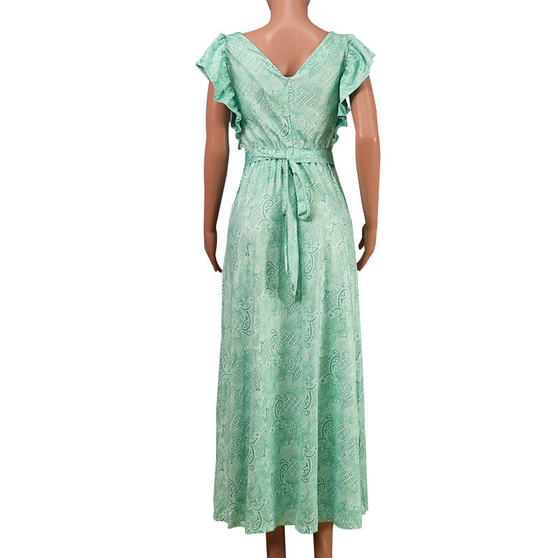 Wear V-neck Summer Sleeveless Printed Long Dress