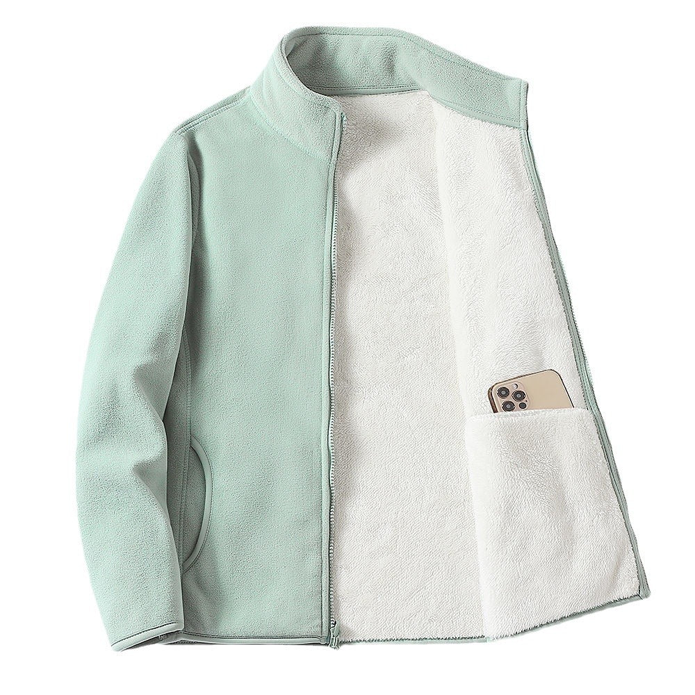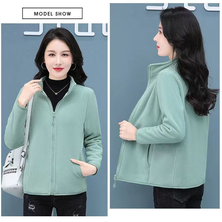 Women's Autumn And Winter Lamb Wool Stand Up Collar Cardigan Sweatshirt