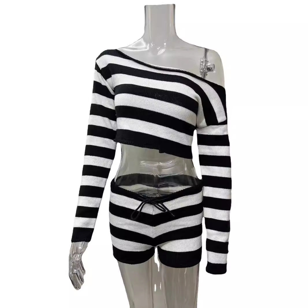 Women's Clothing Fashion Suit Striped Short Style Exposed Navel