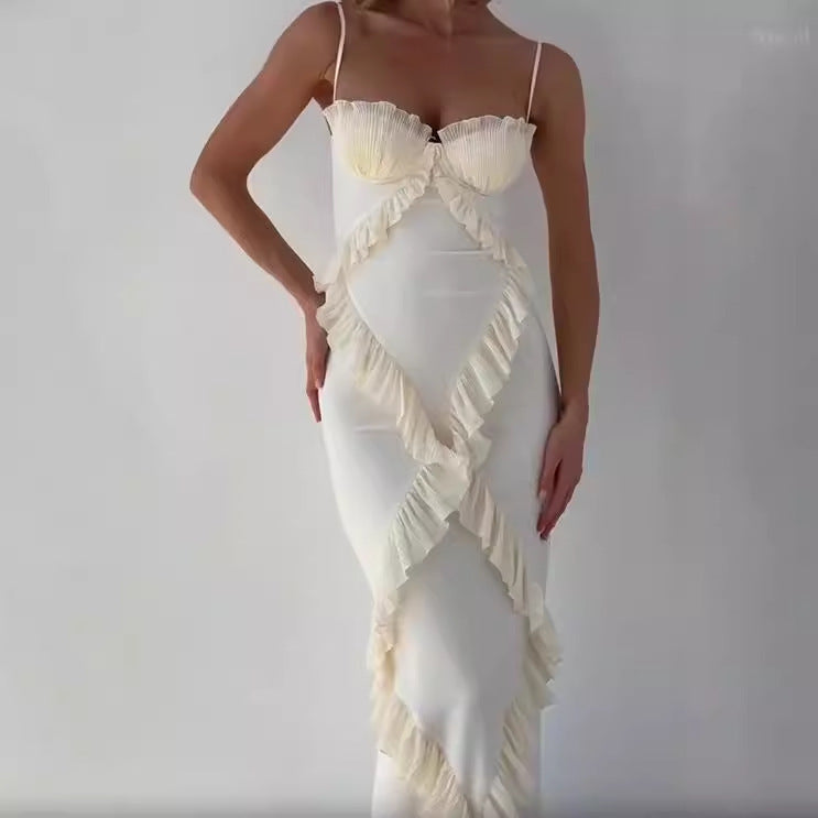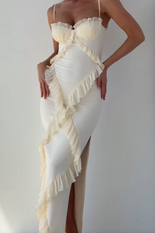 Women's Clothing Hot Sale At AliExpress Pleated Ruffled Spaghetti Straps Split Dress