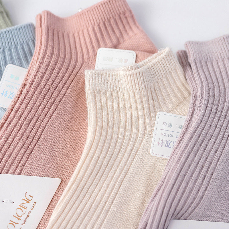 Women's Double Needle Solid Color Cotton Short Ankle Socks
