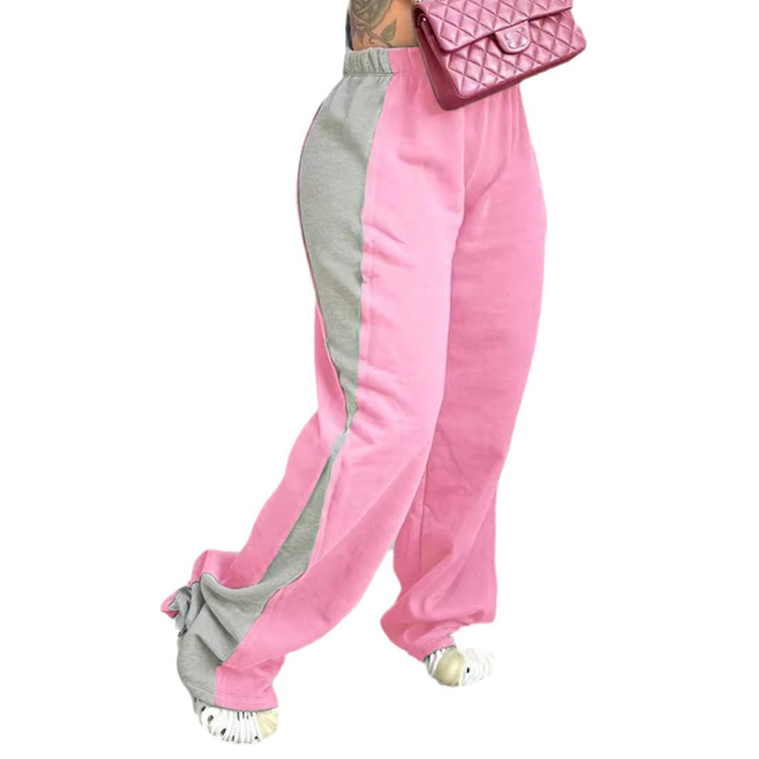 Women's Elastic Waist Colorblock All-matching Straight Wide Leg Sweatpants