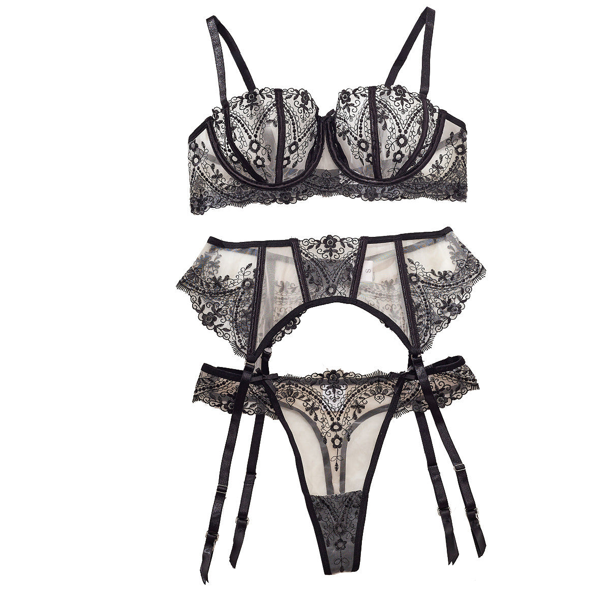 Women's Embroidered Sheer Mesh Sexy Underwear Set