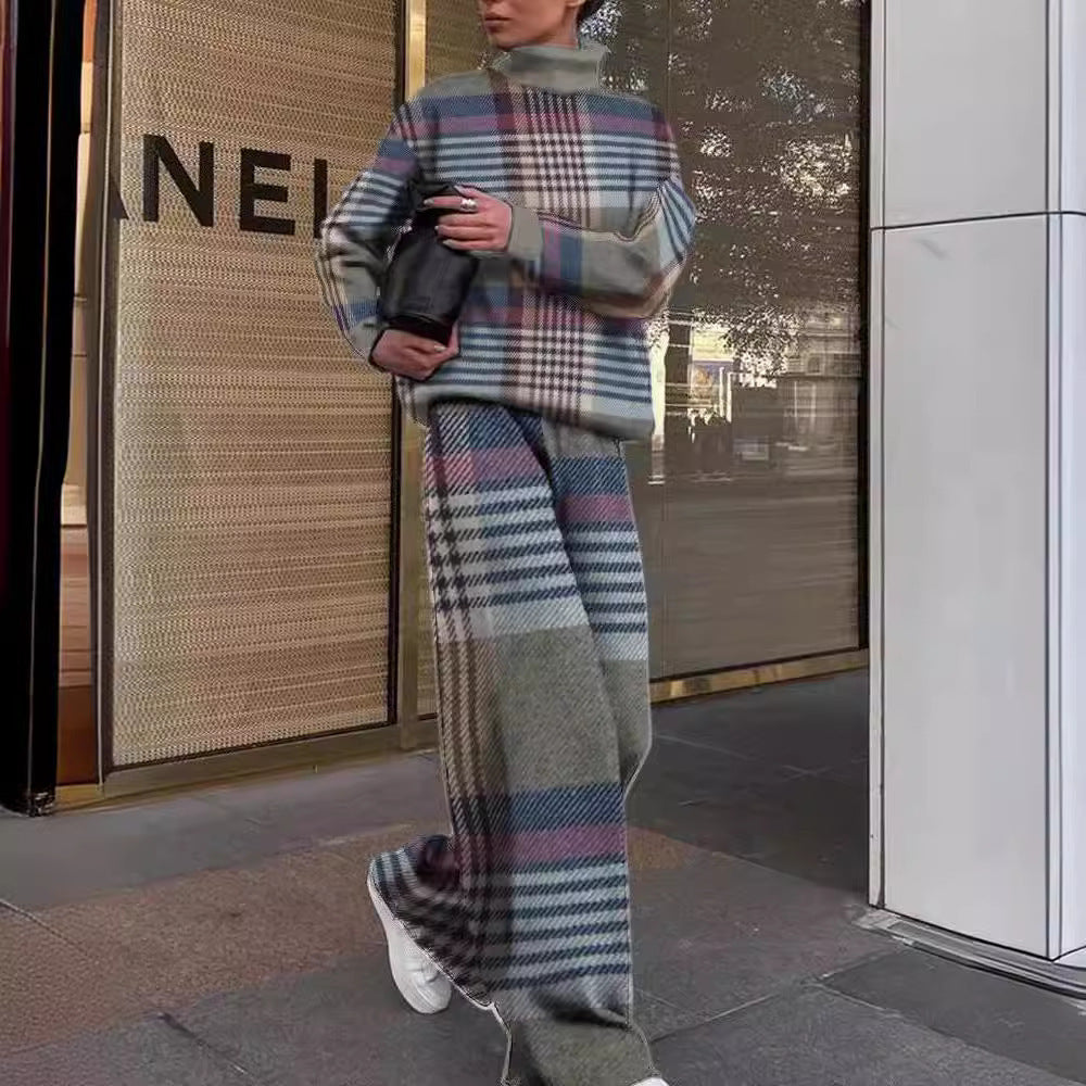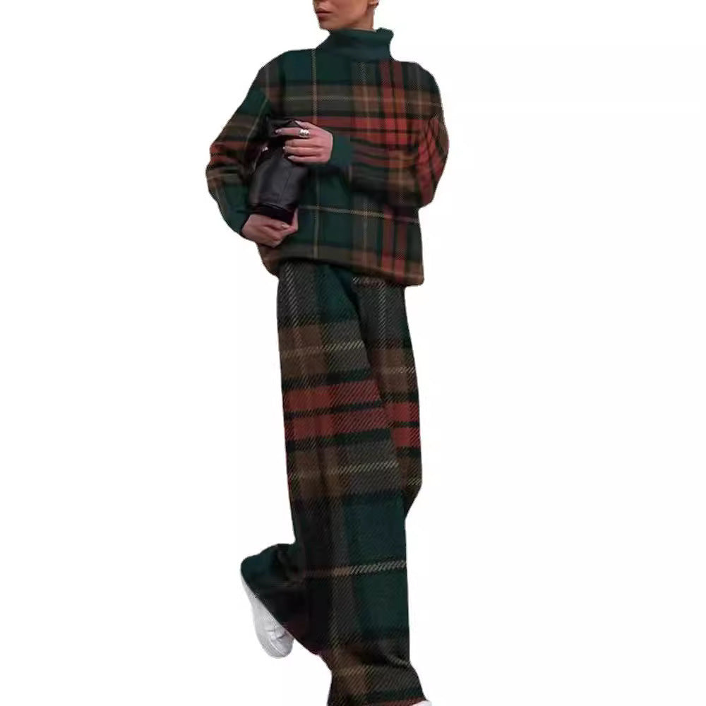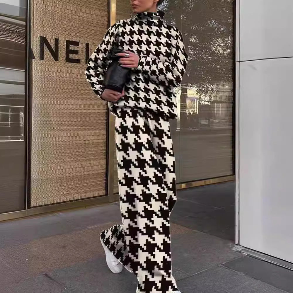 Women's Fashion Printed Loose High Collar Long-sleeved Two-piece Suit