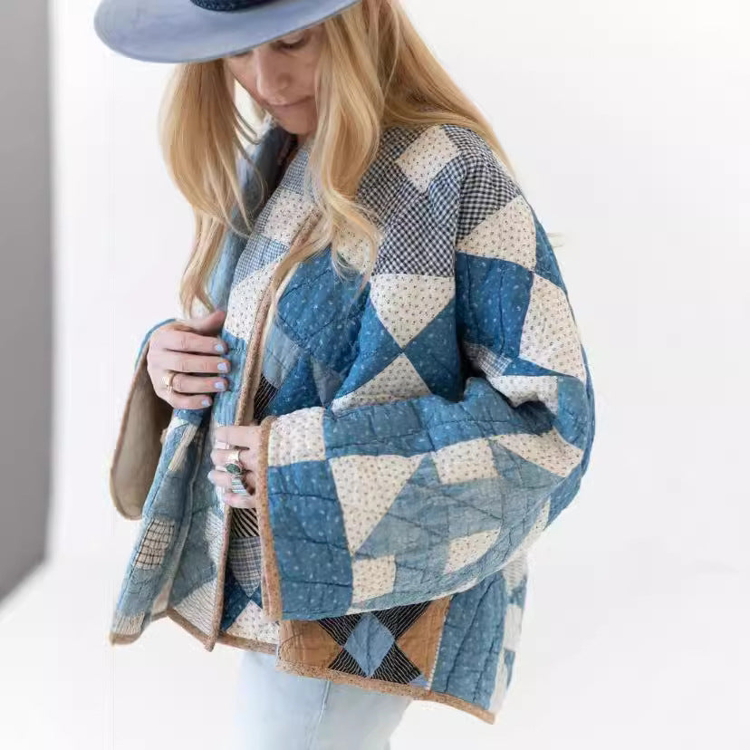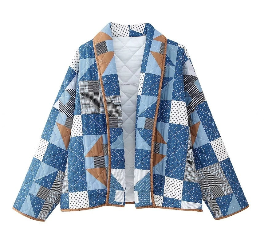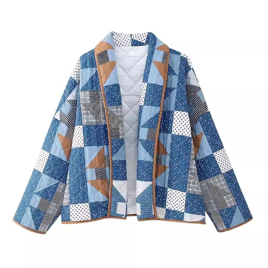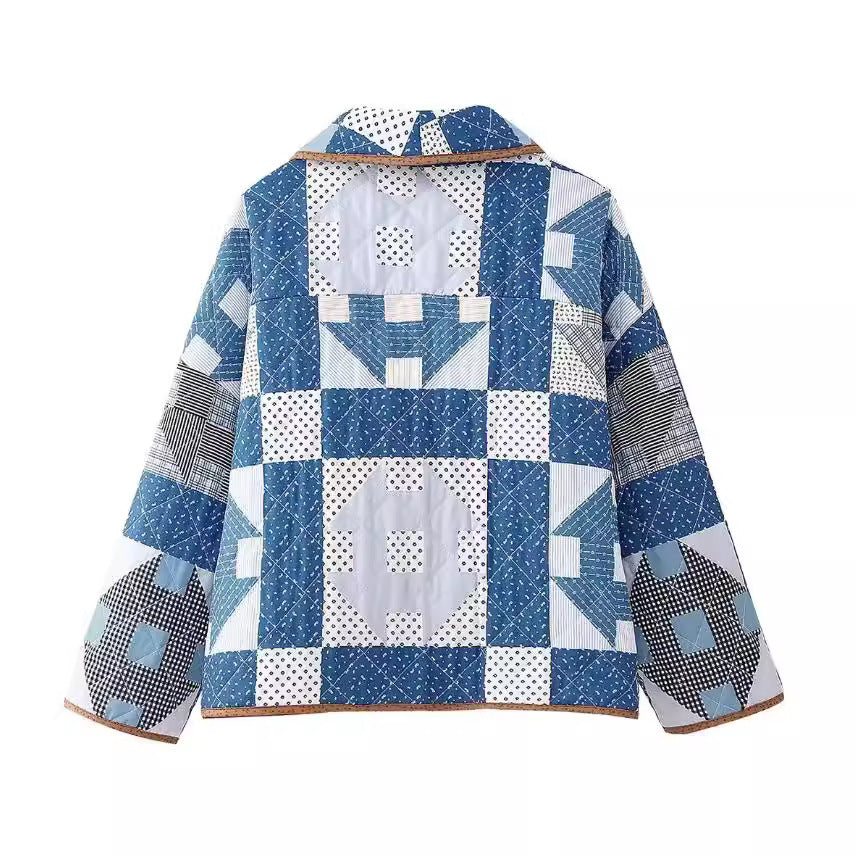 Women's Geometric Pattern Print Cotton-padded Jacket Coat