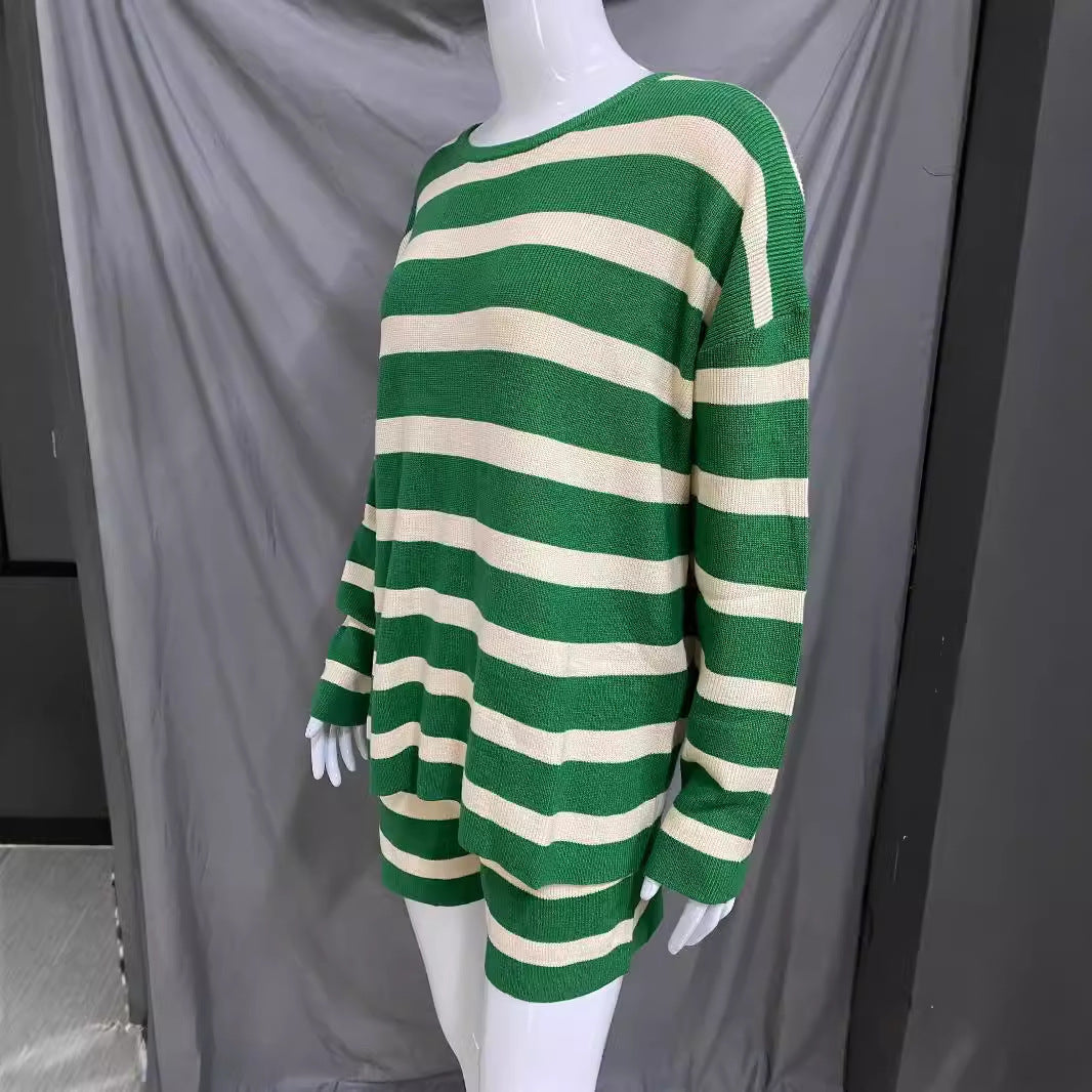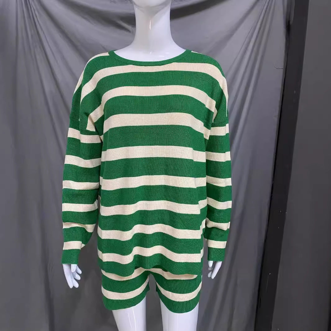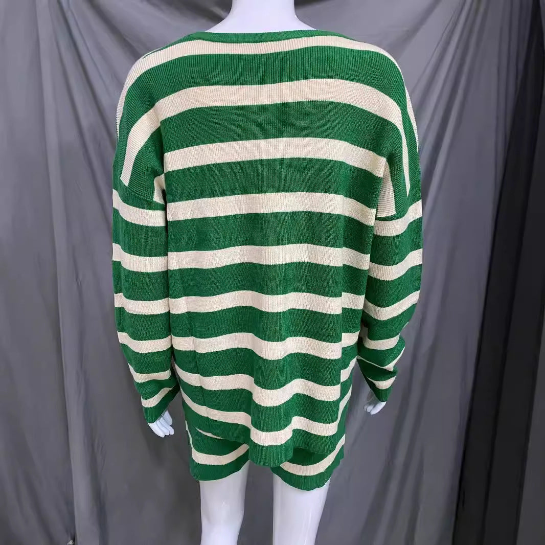 Women's Knitted Color Matching Suit Striped Long Sleeve