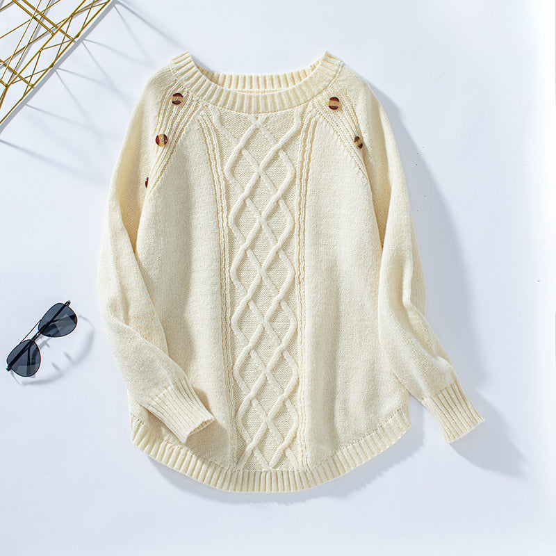 Women's Knitwear Button Loose Pullover Twisted Flower