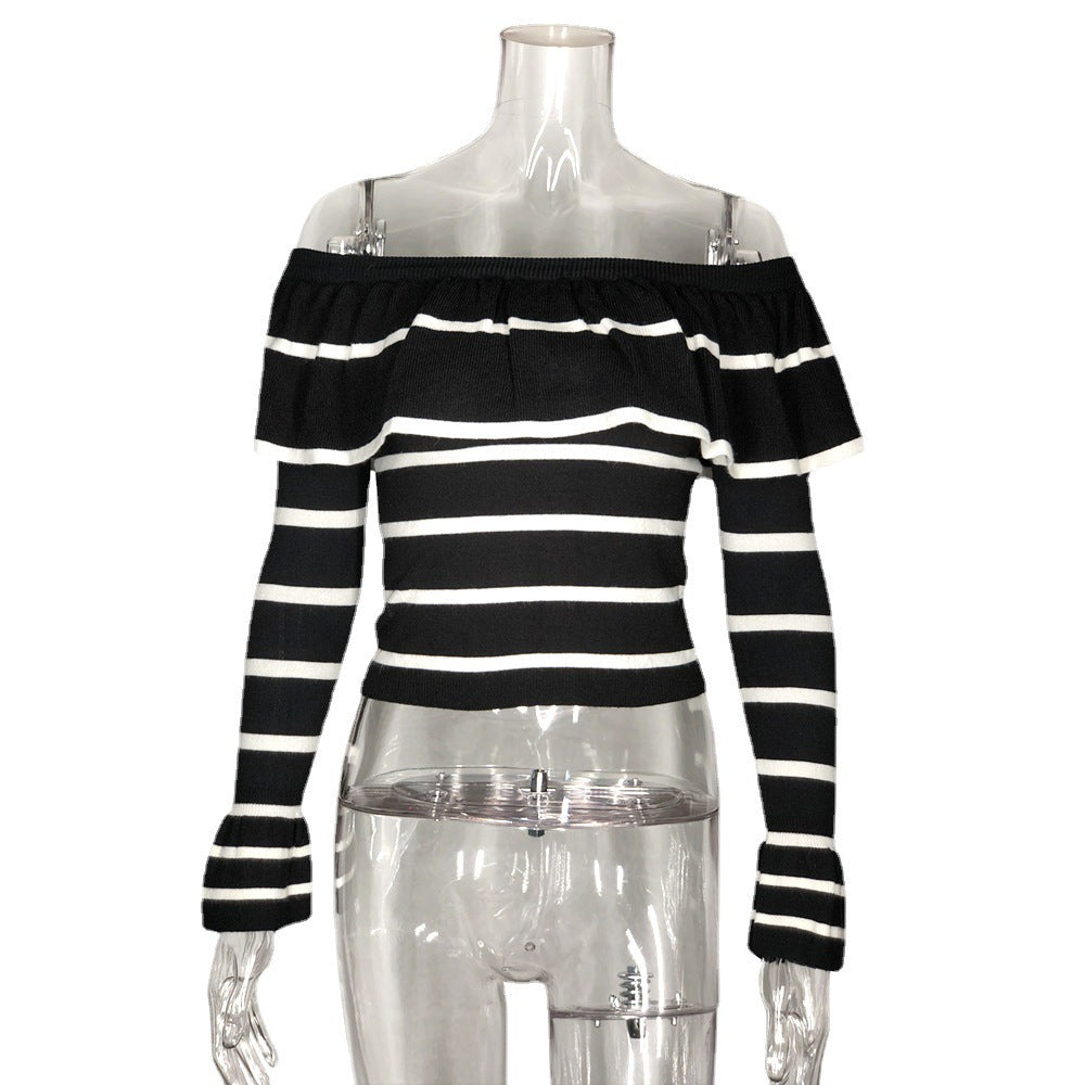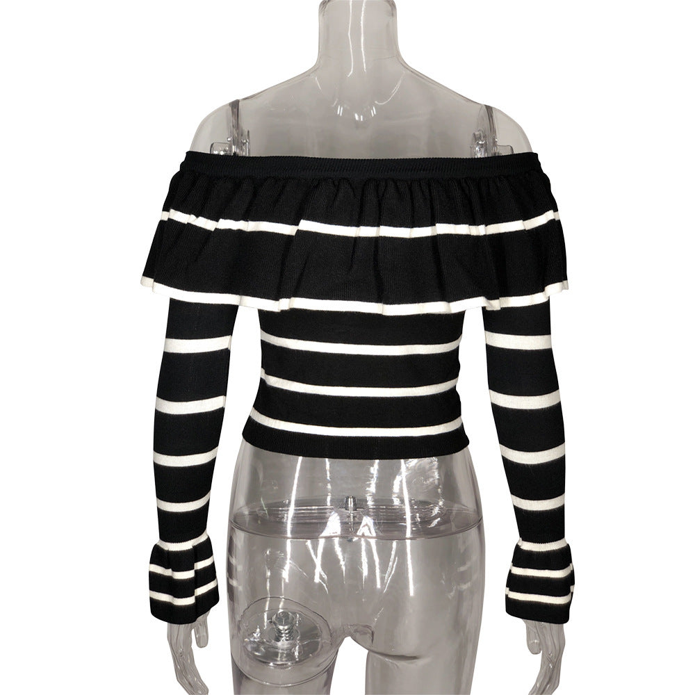 Women's Long Sleeve Pullover Top Striped Ruffles