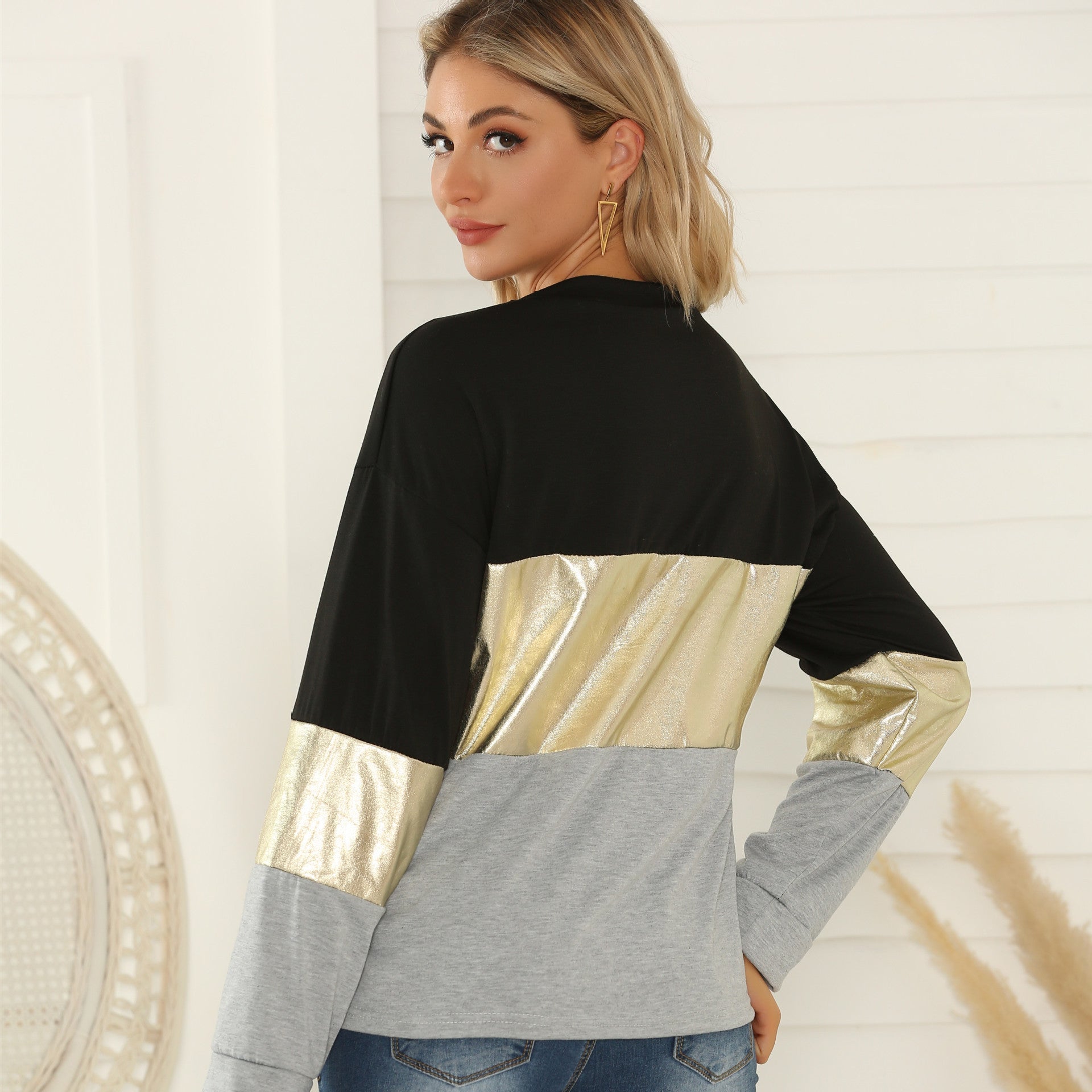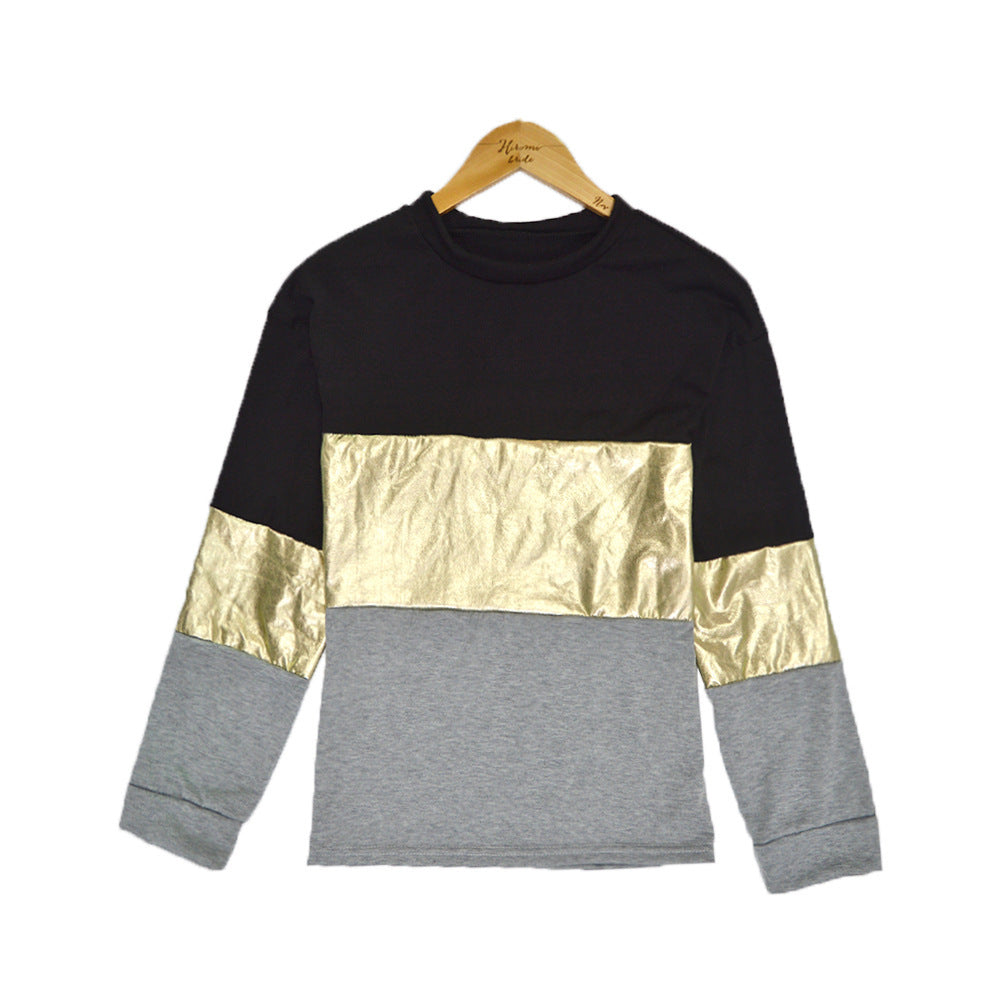 Women's Long Sleeve Stitching Golden Edge Top