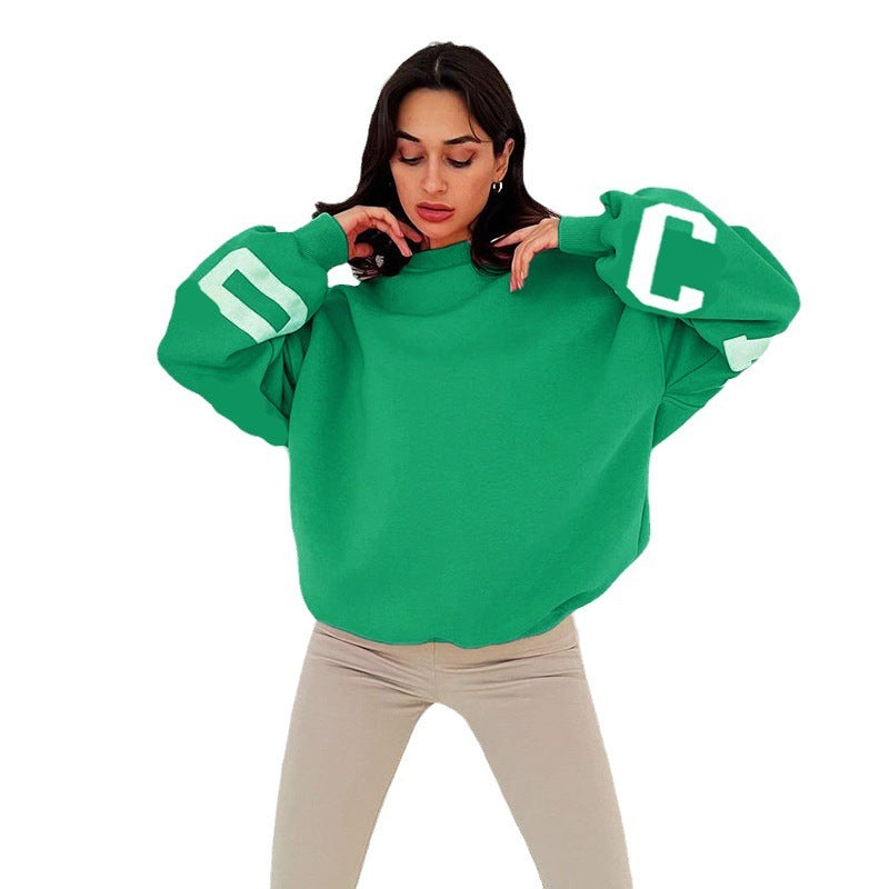 Women's Round Neck Loose Letter Printed Long Sleeve Sweater