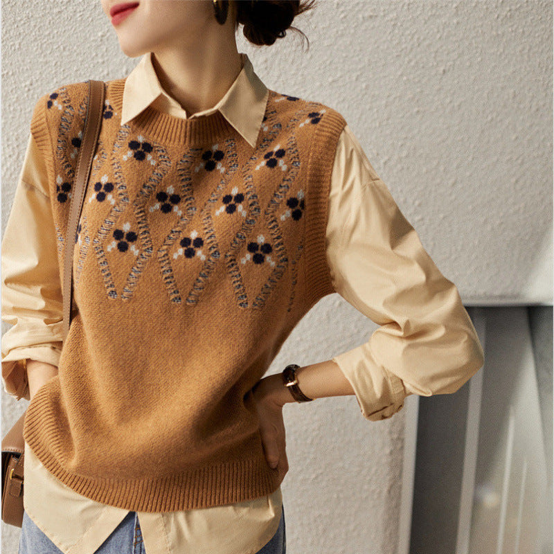 Women's Round Neck Sweater Vest Bandage Dress Knitted Vest