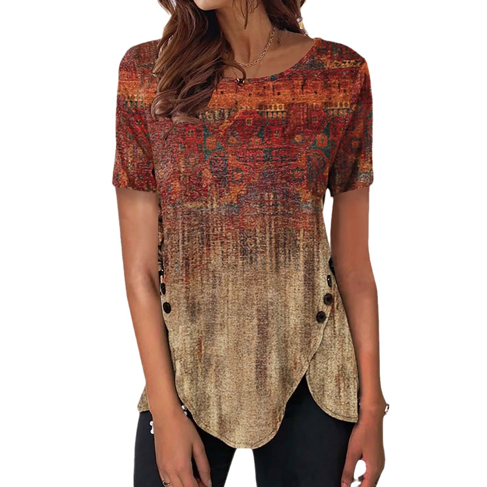 Women's Short-sleeved Mid-length Round Neck Loose T-shirt Top