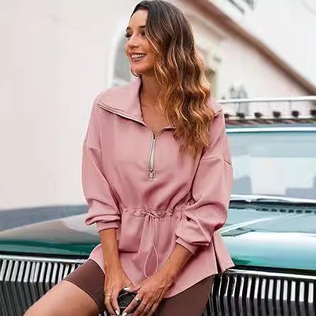 Women's Super Plus Size Sweatshirt Half Zipper Drawstring