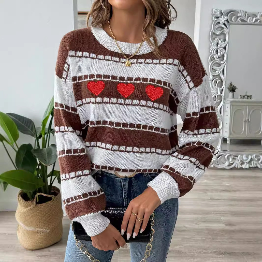 Women's Sweater Bottoming Shirt Color Contrast Patchwork Stripes
