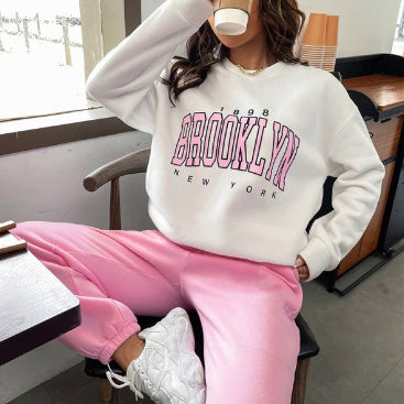 Women's Sweater Suit Hoodie Two-piece Pullover Letter Print 1898 New York Brooklyn