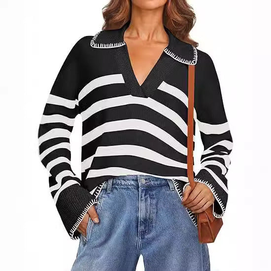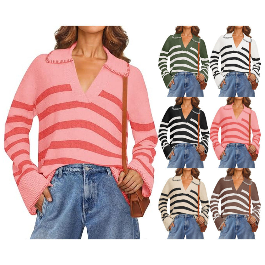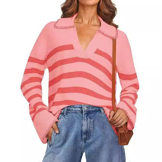 Women's V-neck Pullover Leisure Knitted Top