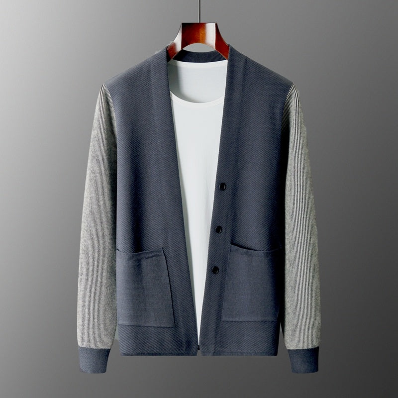 Wool Coat Men's Fall Plus Size Loose Casual Contrast Color Pocket Sweater
